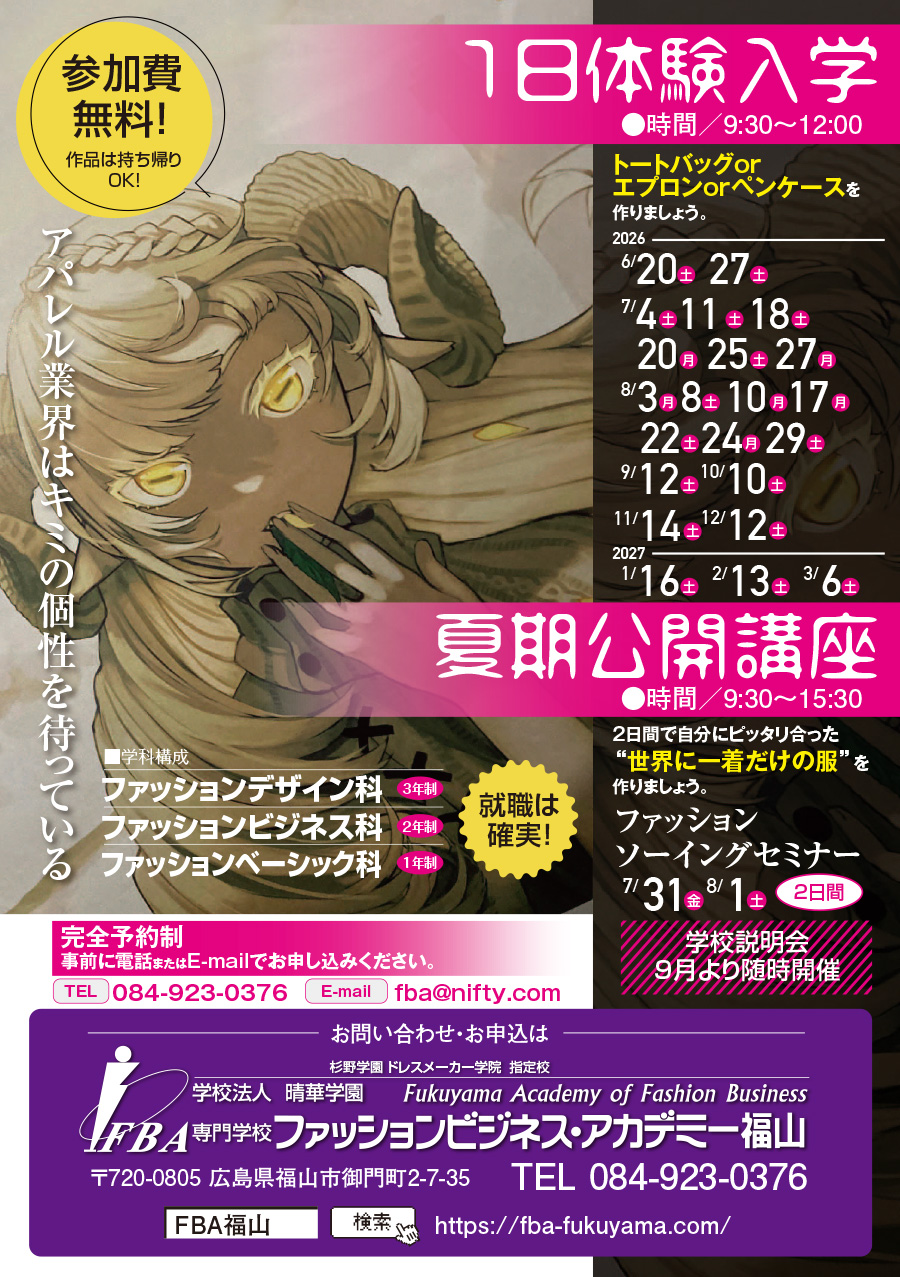 © 2014-2026 Fukuyama Academy of Fashion Business.All Right Reserved.